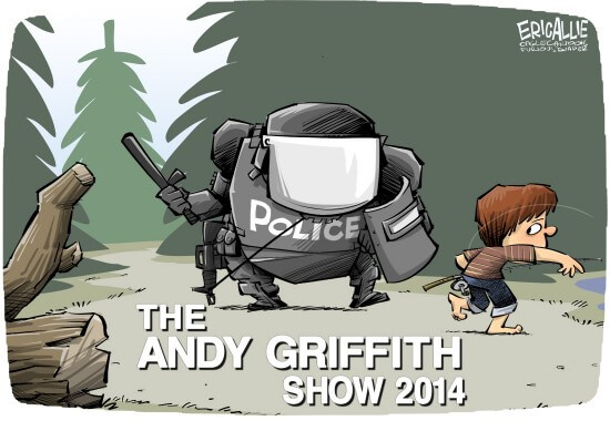 Eric Allie Political Cartoon Police Militarization Andy GriffithThis entry was posted in Images and tagged #LOLGov Eric Allie Police Militarization Police State Political Cartoon Eric Allie Political Cartoon Police Militarization Andy Griffith Related posts: SWAT Stop Bourgeoisie Police Barney Fife Then and Now